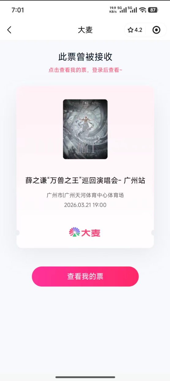 直接通过大麦小程序录入信息100%有票可选座位。